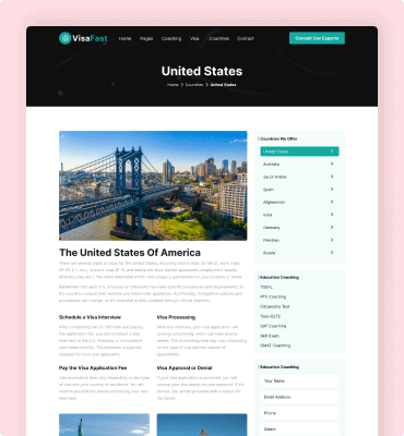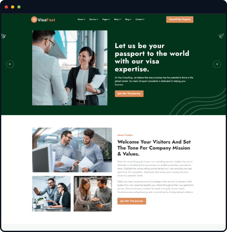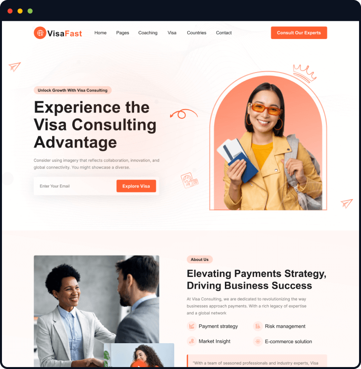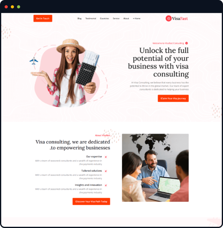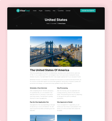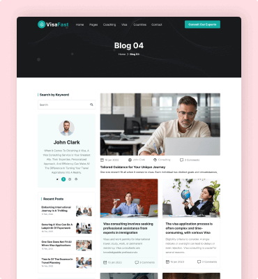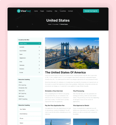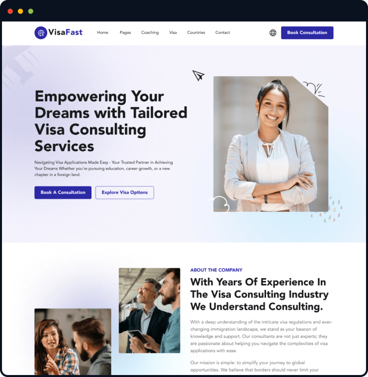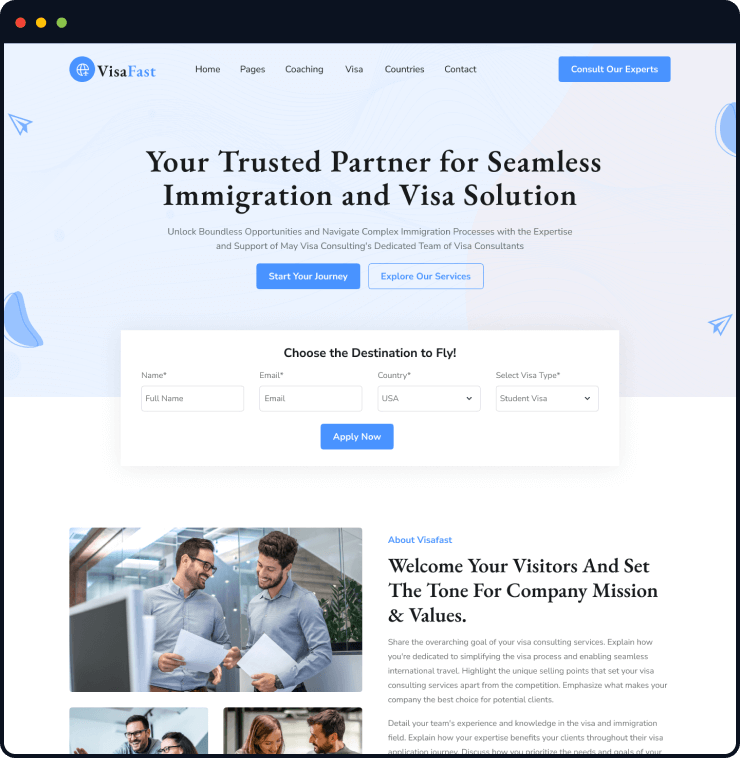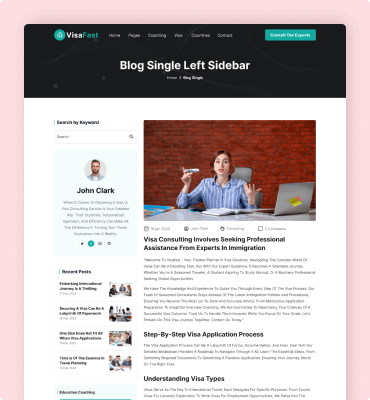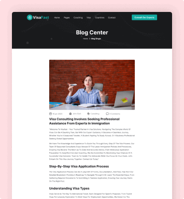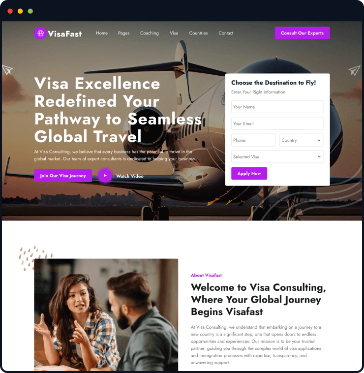 Visafast HTML5 landing page template for consultant & agencies who provide counseling services for immigration.