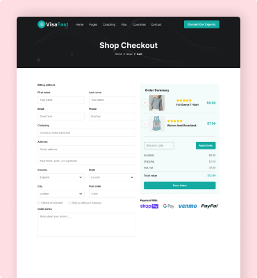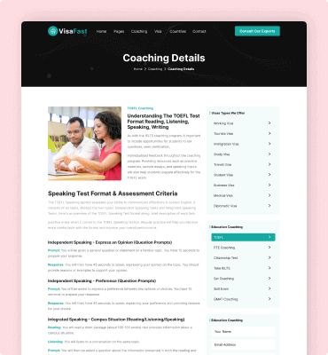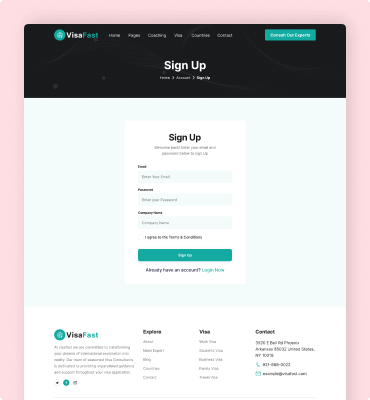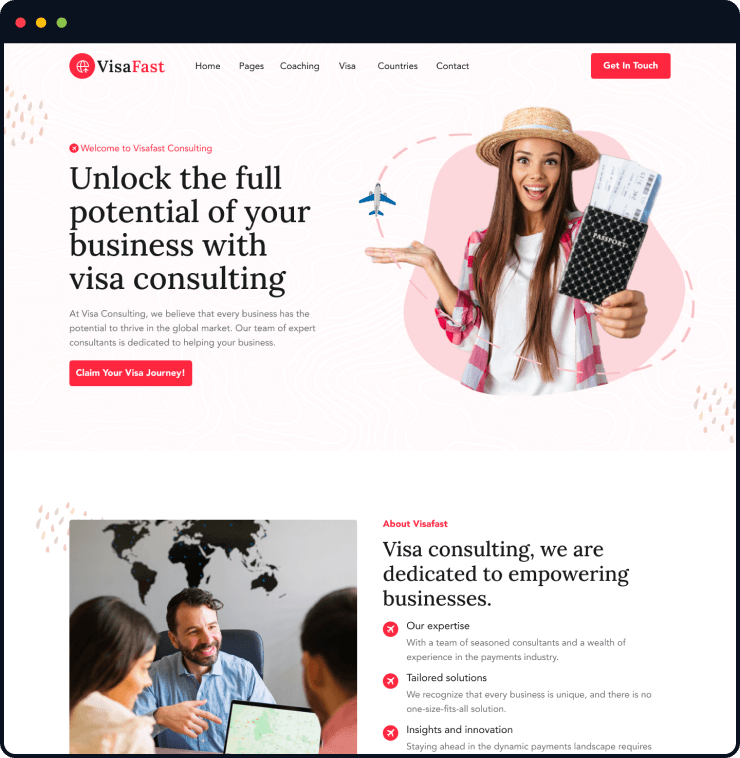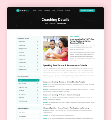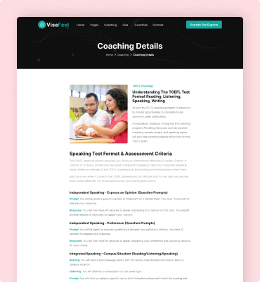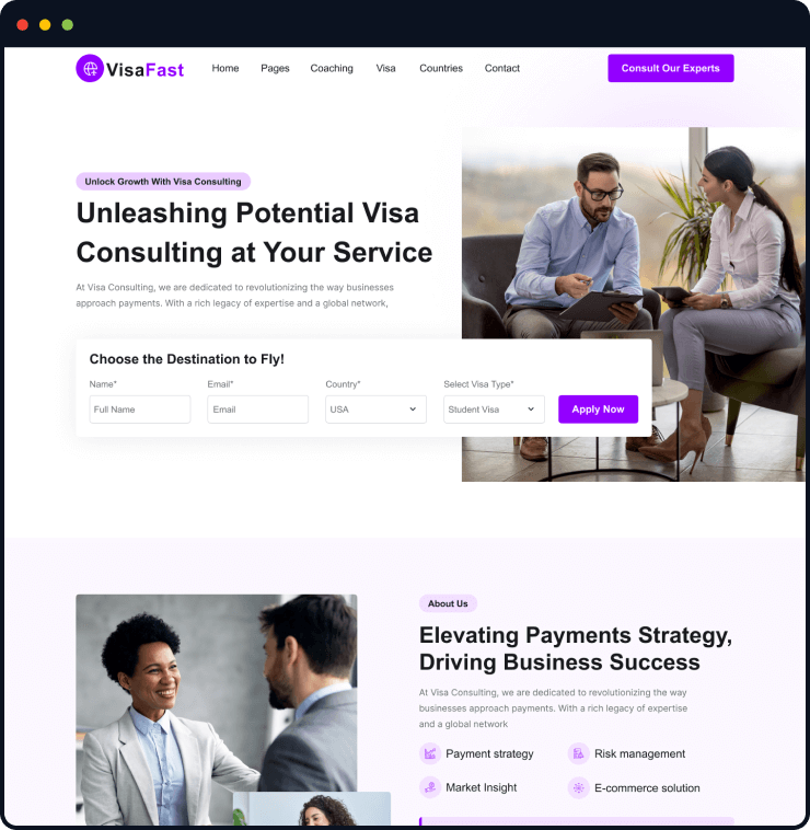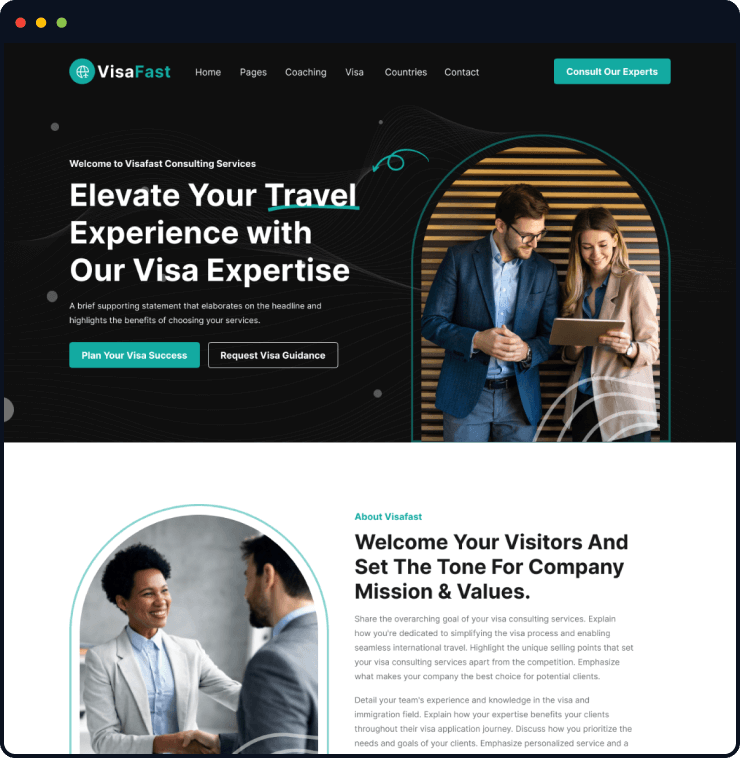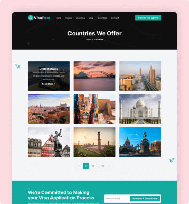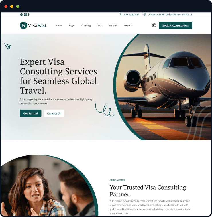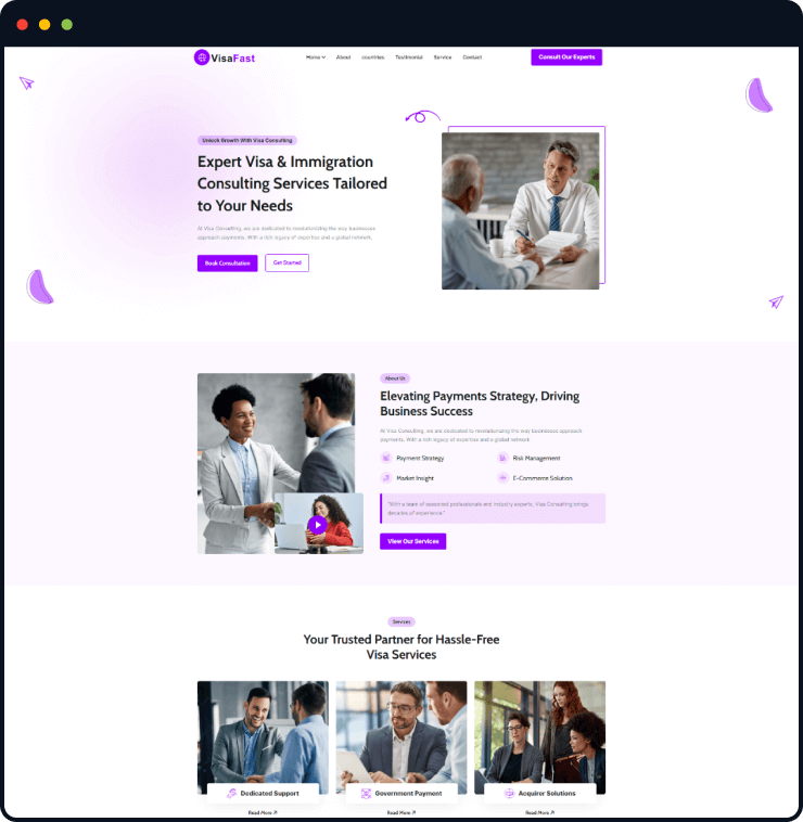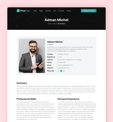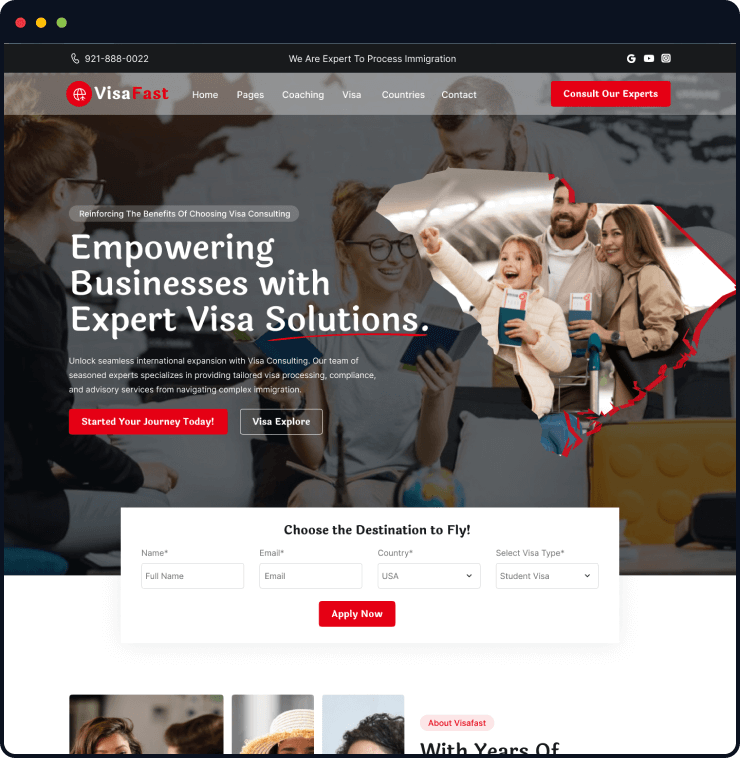 Visafast HTML5 landing page template for consultant & agencies who provide counseling services for immigration.